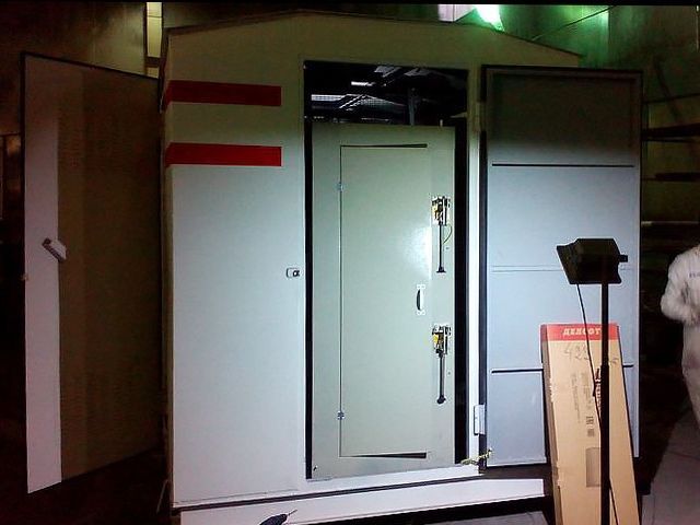 Несколько лет назад нам уже приходилось сталкиваться с изготовлением комплектной трансформаторной подстанции утепленного типа без коридоров обслуживания (см. фото ниже), но достаточно высокая стоимость такого корпуса не давала значительных преимуществ на фоне обычных КТП с коридорами обслуживания.