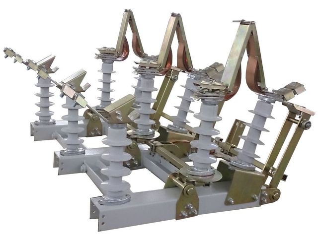 Обычно такие разъединителя выпускаются в трехполюсном исполнении, но иногда встречаются и двухполюсные (в основном в электросетях железных дорог).
