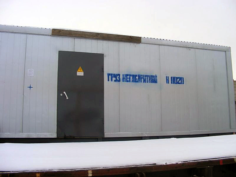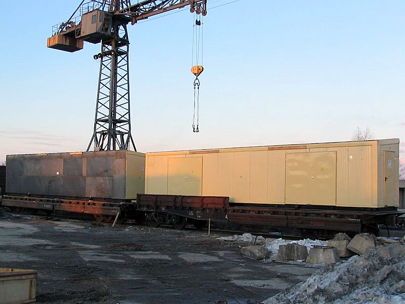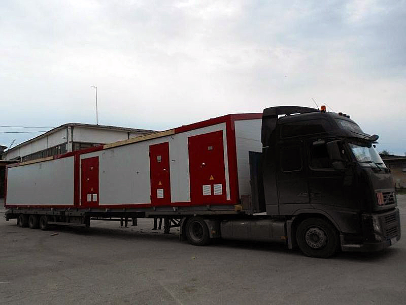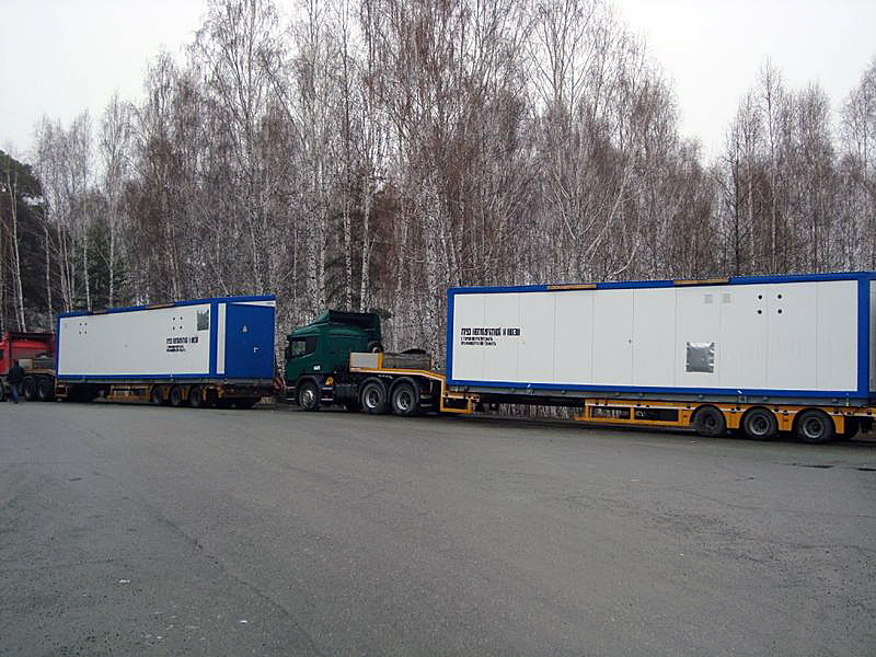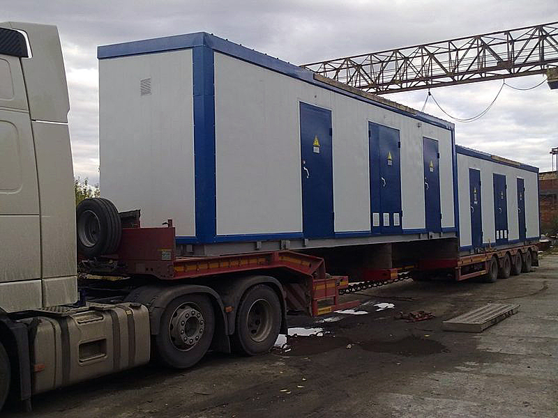 Тут мы естественным образом переходим к отгрузке комплектных трансформаторных подстанций и распределительных устройств автомобильным транспортом. Фото 9 - отправка двух блоков 3х9 м низкорамными полуприцепами.