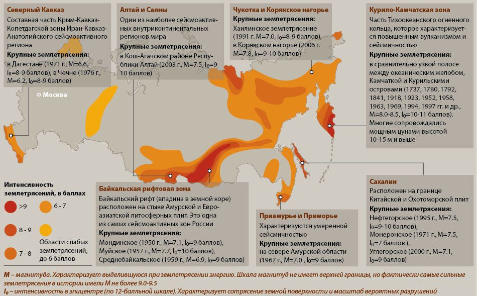 Сейсмически опасные зоны России (кликните для увеличения)